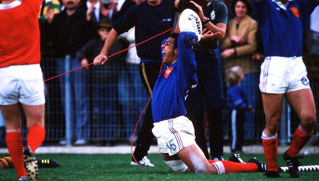 Pour les adieux internationaux de Philippe Sella, les Bleus s’offrent une première phase parfaite avec trois victoires en poule. L’essai en coin d’Emile Ntamack face à l’Ecosse permet aux Tricolores de terminer invaincus. Dans des conditions climatiques difficiles, sous une pluie torrentielle, les Bleus échouent à quelques mètres de la finale face à l’Afrique du Sud, qui s’imposera chez elle sous les yeux de Nelson Mandela.